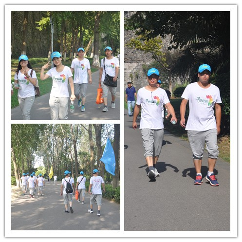 上午7時(shí),參加活動(dòng)的員工早早的來(lái)到指定地點(diǎn)集合。早晨的天氣微涼,適宜的溫度,伴著員工們飽滿的熱情,躍躍欲試的心情,7點(diǎn)30分,按照預(yù)定的路線,隊(duì)伍從金港大廈出發(fā),開(kāi)始了10公里的徒步旅程。到達(dá)南京火車(chē)站后,環(huán)湖的旅程也正式開(kāi)始。此次路線途徑孟江閣、臺(tái)城花園、明城探幽等旅游景點(diǎn),最終到達(dá)太陽(yáng)宮演藝廣場(chǎng)。太陽(yáng)升起,溫度逐漸升高,卻絲毫沒(méi)有影響隊(duì)伍前進(jìn)的步伐,步速快的停下來(lái)等著走的慢的跟上,并肩行走的人兒時(shí)不時(shí)詢問(wèn)同伴一聲“累不累”,一路上,大家邊走邊看,欣賞美景,相互鼓勵(lì),歡聲笑語(yǔ)不斷。